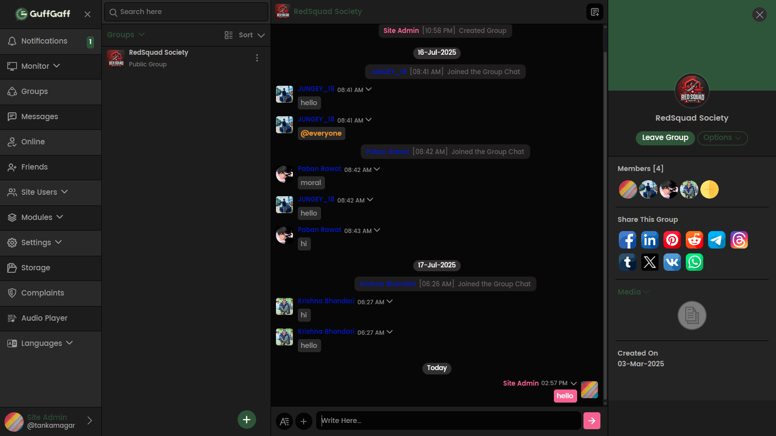 While GuffGaff stands out for its modern features and inclusive design, it faces challenges such as internet dependency, moderation complexity, and user engagement sustainability. Nonetheless, it serves as a practical and impactful communication solution aimed at fostering real-time collaboration and building digital communities. It is especially beneficial for educational, social, and professional use, offering a balanced mix of functionality, security, and user experience. GuffGaff exemplifies student-led innovation in real-time web application development.